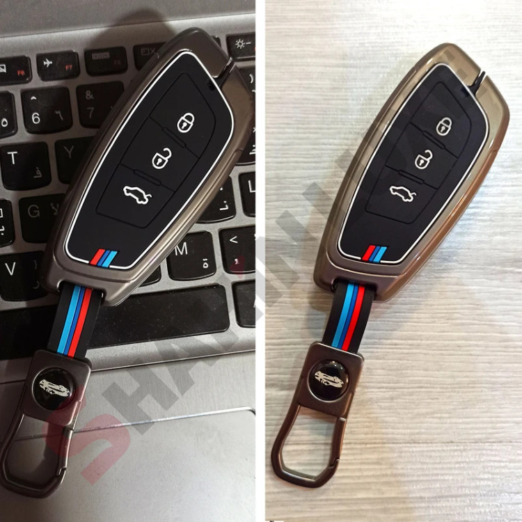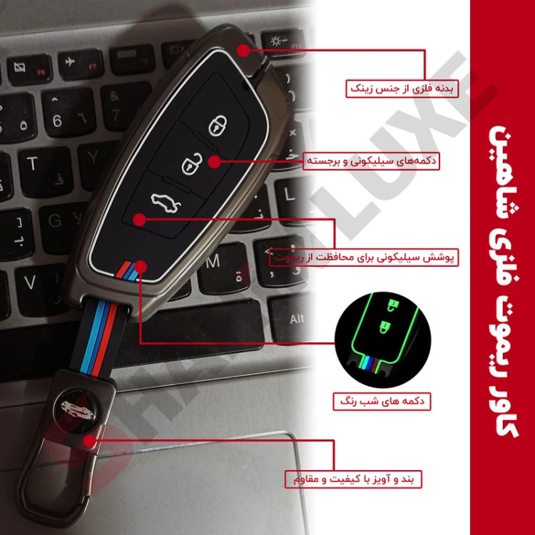 کاور ریموت فلزی لاکچری خودرو با بند طرح خودرو و رنگ تیتانیوم مناسب برای شاهین (سایپا)