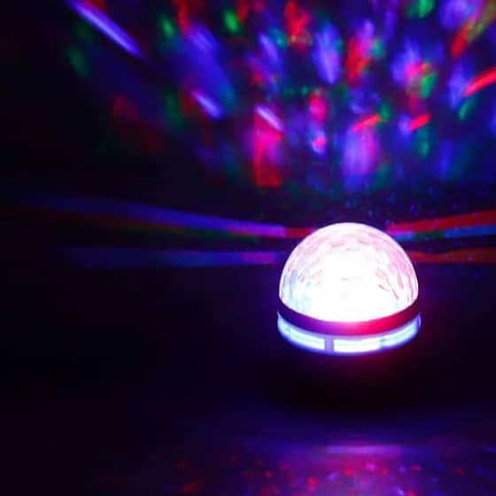 این مدل از LEDهای RGB استفاده میکند و افکتهای چرخشی و ترکیبهای رنگی متنوع ایجاد میکند. همچنین دارای ریموت کنترل و حالت فعالسازی با صدا است که باعث میشود نورها با ضرباهنگ موسیقی تغییر کنند.