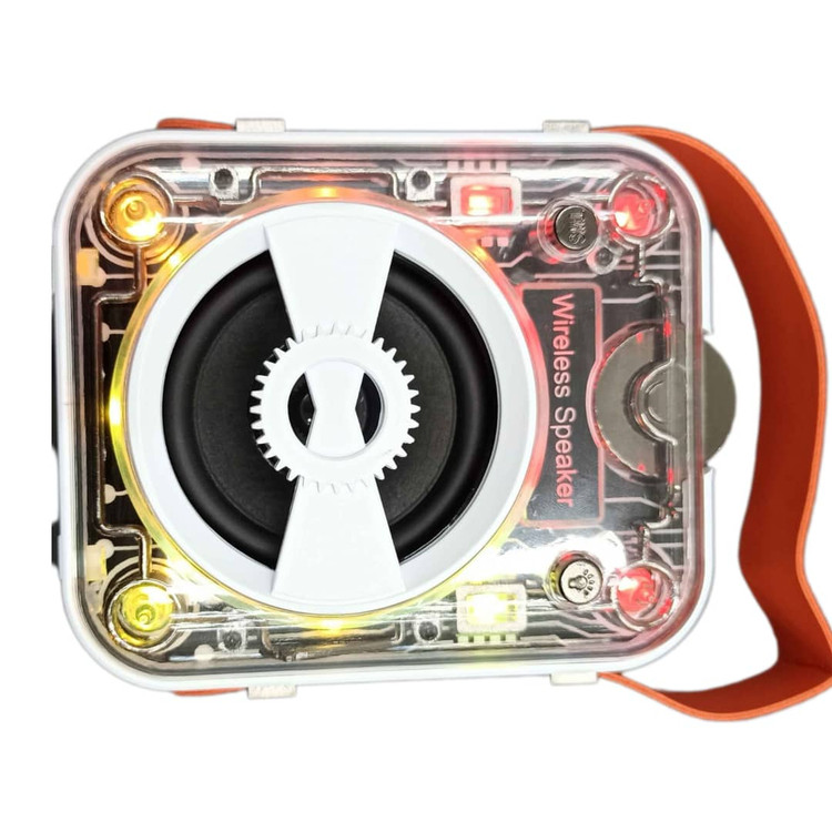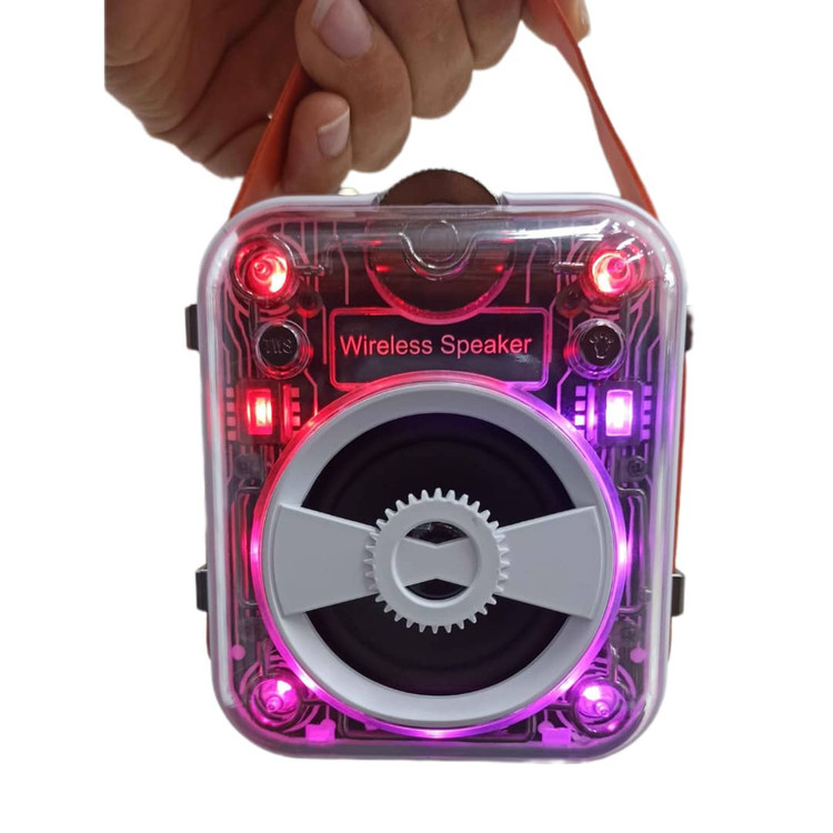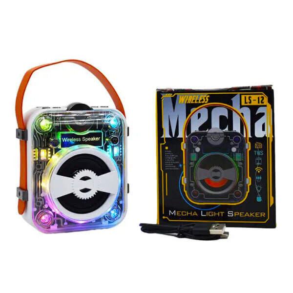 اسپیکر شارژی Mecha مدل LS‑12 یک اسپیکر کوچک اما کاملاً جذاب و متفاوت است که با طراحی شفاف (Transparent Body) و چراغهای رنگی RGB جلوهای شبیه گجتهای مکانیکی و گیمینگ دارد. این مدل علاوه بر ظاهر جذاب، امکانات کامل مثل پشتیبانی از بلوتوث، فلش USB، رم Micro SD، رادیو FM و ورودی AUX را هم ارائه میدهد.
