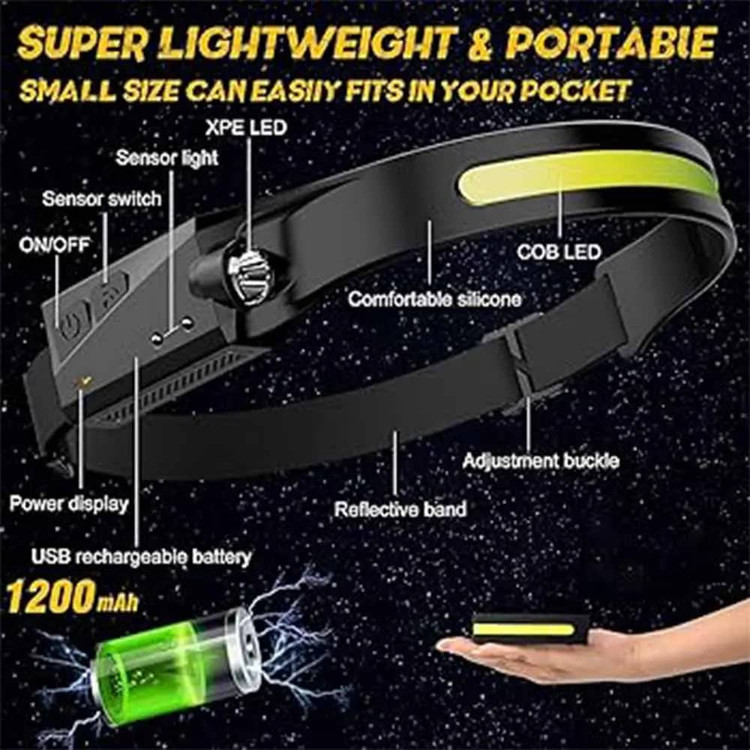 هدلامپ شارژی سنسوردار مدل W689-1 (هدلایت تک لاین)