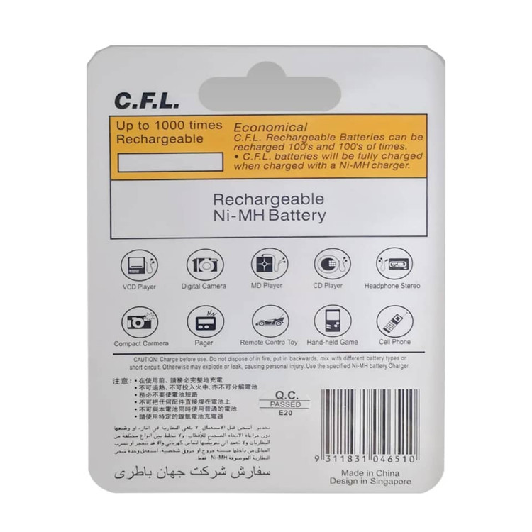 اگر از آن دسته کاربرانی هستید که نمیخواهید مدام باتری یکبارمصرف بخرید، این محصول انتخابی اقتصادی، کارآمد و قابل اعتماد است. ترکیب عملکرد مناسب و قیمت منطقی، باعث شده C.F.L در رده باتریهای Ni-MH میانرده روبهبالا جای گیرد.